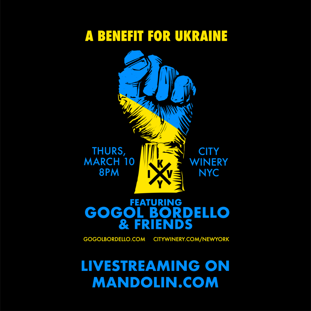 L’hanno organizzato i Gogol Bordello, band americana di gypsy punk che nel nome cita lo scrittore di origine ucraina Nikolaj Gogol e che è guidata da Eugene Hütz, nato da padre russo e madre ucraina. Sul palco di A Benefit for Ukraine ci saranno anche Patti Smith, Suzanne Vega, Stephin Merritt dei Magnetic Fields, Craig Finn & Franz Nicolay, Jesse Malin, Lady Lamb, Marc Roberge, Matisyah e altri.
