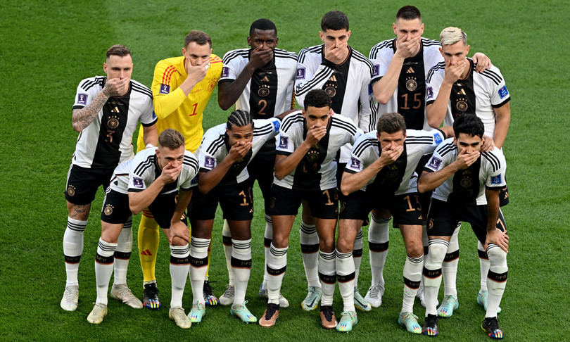 Prima del fischio d’inizio della partita d’esordio contro il Giappone, poi incredibilmente persa per 1-2, nella tradizionale foto di gruppo, tutti gli undici giocatori si sono coperti la bocca, in un chiaro gesto di denuncia per le limitazioni alla libertà di esprimere il sostegno ai diritti della comunità Lgbtq+.