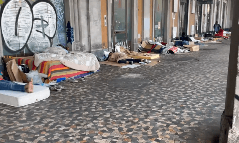 Dopo lo sgombero della tendopoli per senzatetto di viale Pretoriano lungo le mura Aureliane, nei pressi dell’ostello della Caritas, dove si erano registrati alcune aggressioni, ora l’emergenza si è spostata proprio davanti all’ingresso della stazione Termini sotto i portici di una palazzina dove ha sede, tra l’altro, il dipartimento dei Vigili del Fuoco. La ‘terra di nessuno’ è ormai piazza dei Cinquecento all’incrocio con via D’Azeglio, alle spalle di Palazzo massimo, sede del Museo nazionale romano.