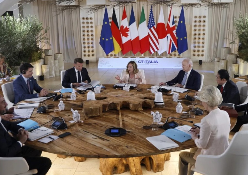 Secondo altre fonti il G7 avrebbe invece raggiunto un accordo “provvisorio” per concedere all’Ucraina un prestito di circa 46 miliardi di euro che sarà finanziato con gli interessi generati dagli attivi della banca centrale russa congelati nell’Unione Europea. Una fonte vicina alle deliberazioni interne del G7 ha detto all’agenzia EFE che gli sherpa hanno già raggiunto un accordo “provvisorio” che deve ancora ricevere l’approvazione formale da ciascuno dei leader. L’accordo definitivo dovrebbe essere annunciato durante la sessione dedicata all’Ucraina alla quale parteciperà Volodymyr Zelensky.